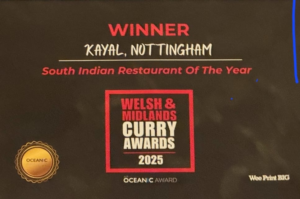 Winner Kayal Nottingham - Welsh Midlands Curry Awards 2025
